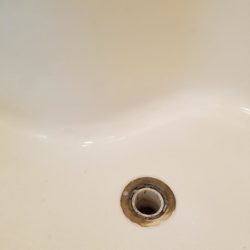 For old porcelain sinks we can refinish them. For sinks it is not always recommended to refinish them and we will go over why. Sometimes it just isn’t cost effective to refinish a sink unless it is unique and hard to find a new replacement. The majority of sinks we refinish have been discontinued or hard to find. Even when refinished, we do not give a warranty on sinks. Sinks take a lot of abuse. If you take care of your refinished sink it will provide many years of use, but being in a kitchen it will more than likely get a pot, pan, or knife thrown in there at some point. We tell customers to treat you newly refinished surface like you would the finish on your car, meaning no harsh, gritty cleaning products. No steel wool to clean it, ect. Now just imagine throwing a pot or pan on the hood of your car. Can’t you just picture a scratch or chip in your paint. Well, a refinished sink is much more likely to get something tossed in it like that. This is why we recommend replacing if possible.